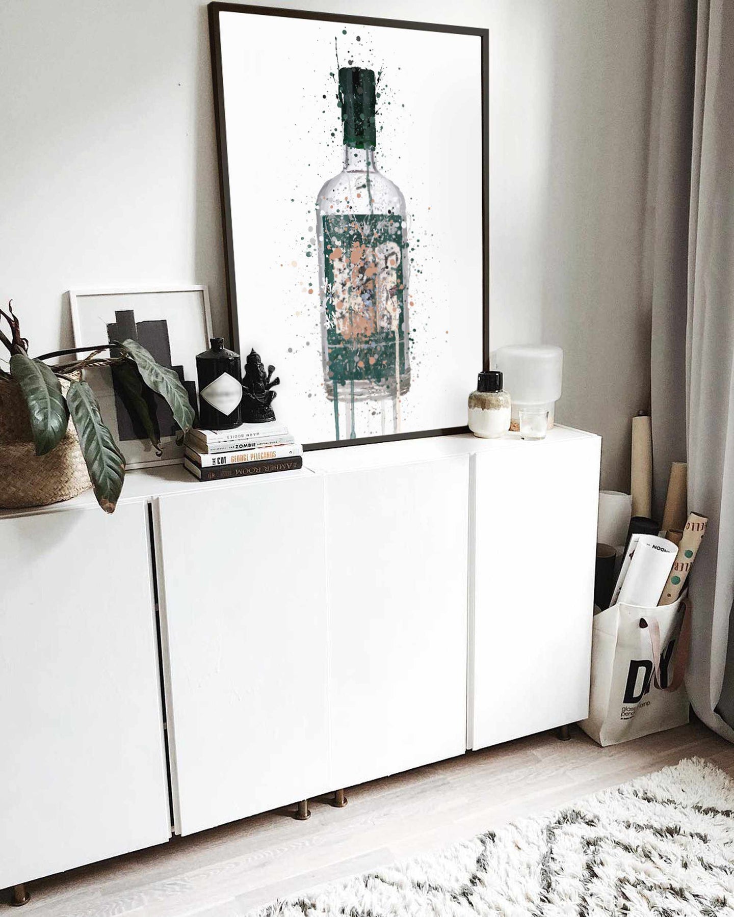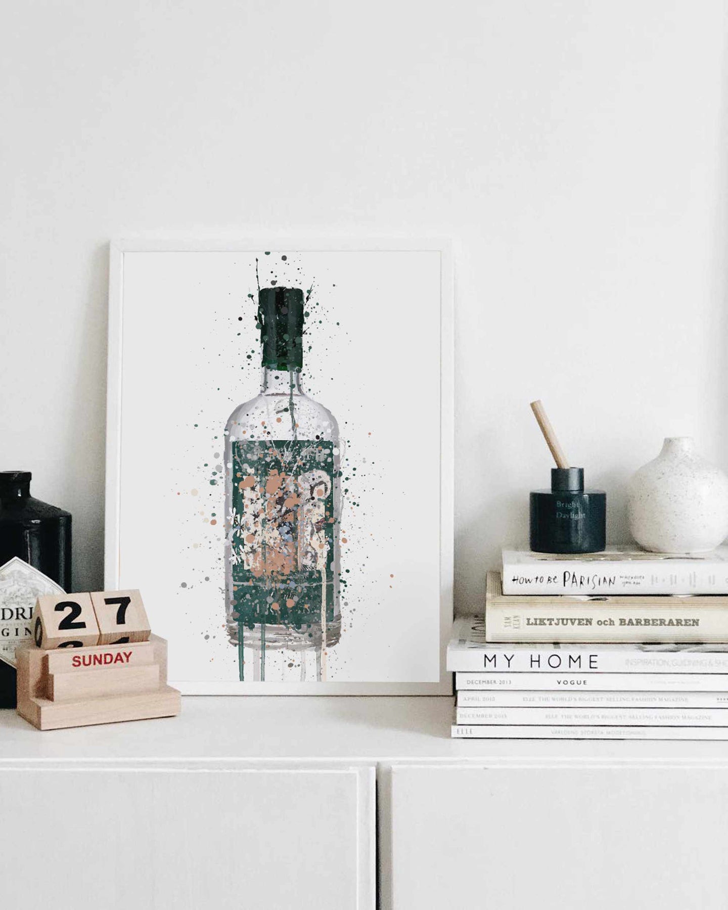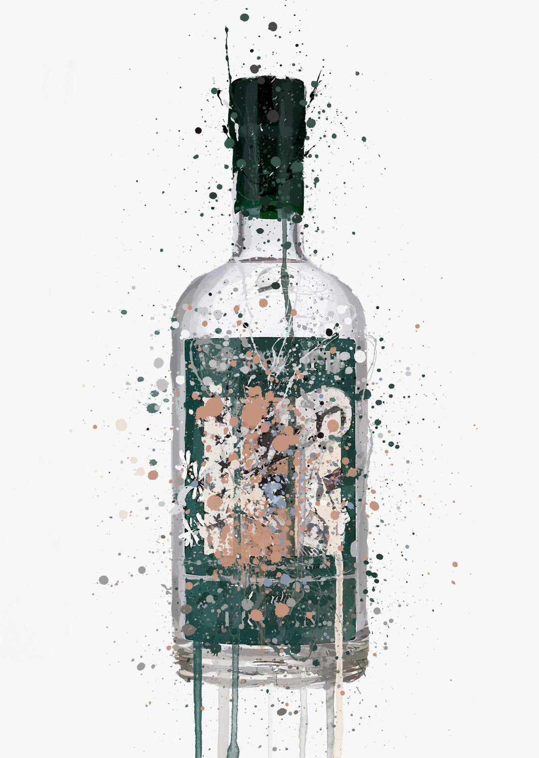 Gin Bottle Wall Art Print 'Deep Pine'
