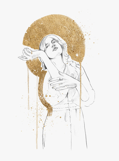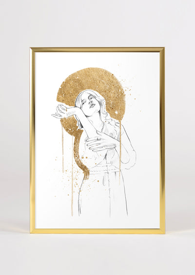 Renaissance Figurative Artwork Female Gold Leaf Wall Art Print 'Star Catcher'